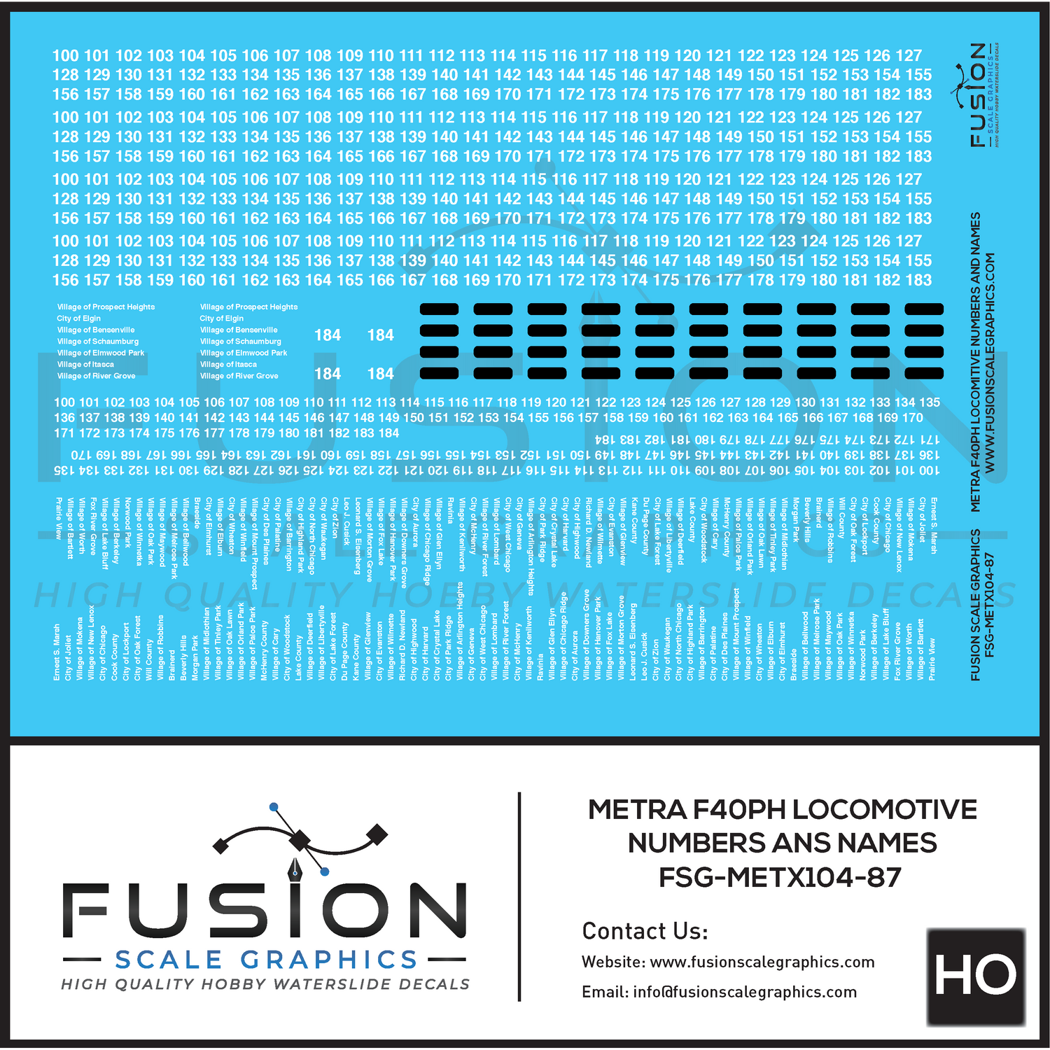 HO Scale Metra EMD F40PH Locomotive Numbers and Names Decal Set may be made to order and will ship within our normal processing time if its not in stock.