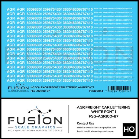 HO Scale AGR White Freight Car Lettering Decal Set Font 1