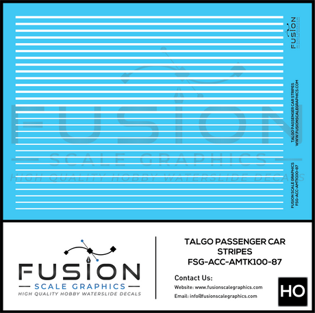 HO Scale Talgo Passenger Cars White Striping Decal Set