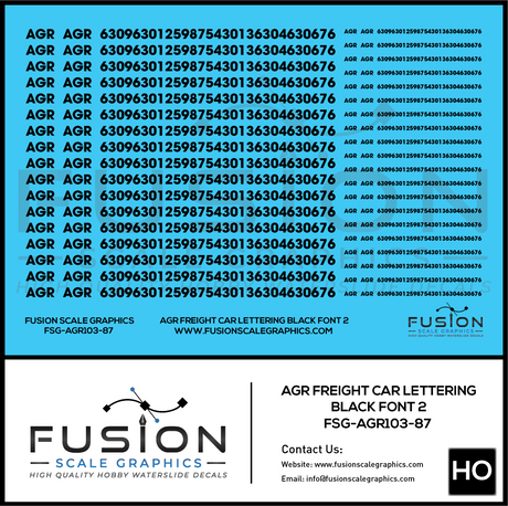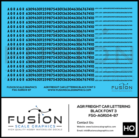 HO Scale AGR Black Freight Car Lettering Decal Set Font 1