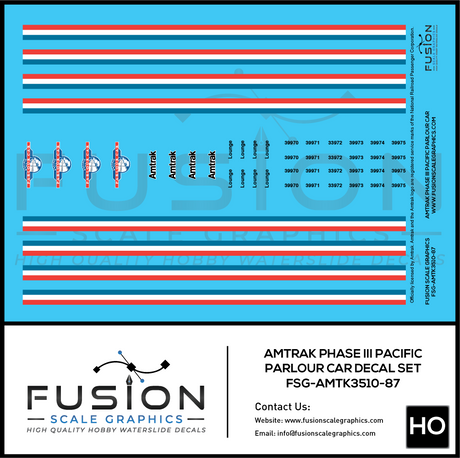 HO Scale Amtrak Phase III Pacific Parlour Car Decal Set