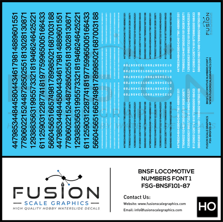 HO Scale BNSF Locomotive Numbering Decal Set V1