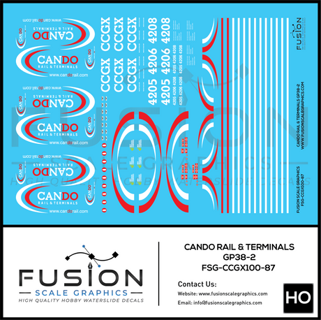 HO Scale Cando Rail and Terminals EMD GP38-2 Locomotives Decal Set