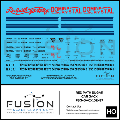 HO Scale Redpath GACX Sugar Car Decal Set