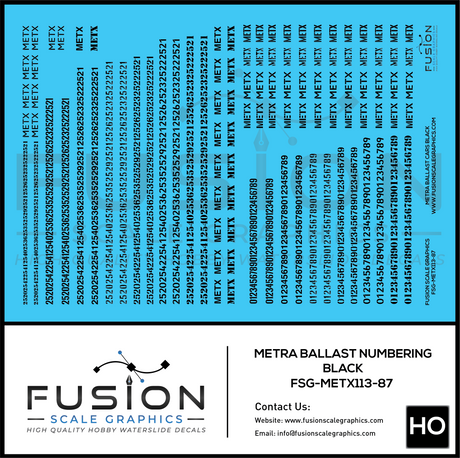 HO Scale Metra Ballast Car Black Numbering Decal Set