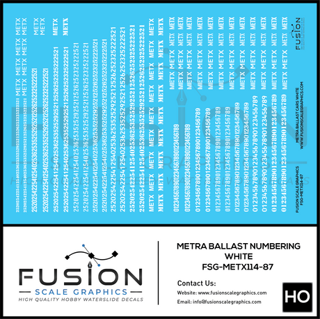HO Scale Metra Ballast Car White Numbering Decal Set