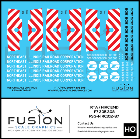 HO Scale RTA NIRC EMD F7 305 308 Locomotive Decal Set