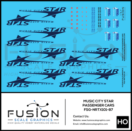 HO Scale Music City Star Pullman Passenger Cars Decal Set