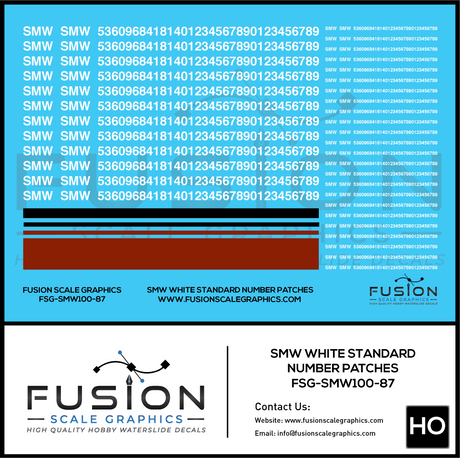 HO Scale SMW White Freight Car Number Patching Decal Set