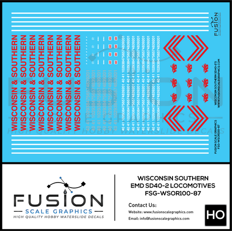 HO Scale Wisconsin & Southern EMD SD40-2 Locomotives Decal Set
