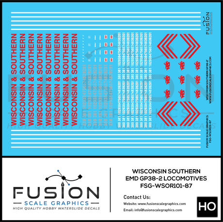 HO Scale Wisconsin & Southern EMD GP38-2 Locomotives Decal Set