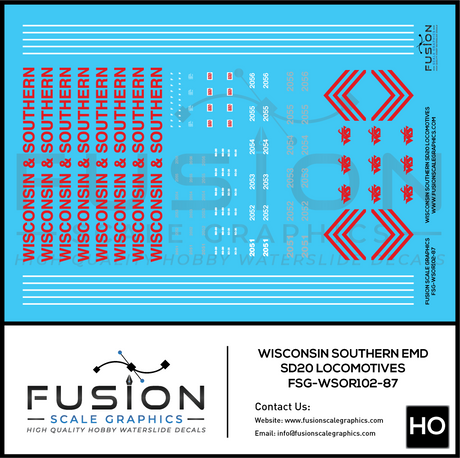 HO Scale Wisconsin & Southern EMD SD20 Locomoitve Decal Set