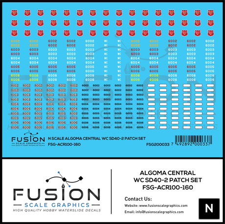 N Scale Wisconsin Central WC ex Algoma Central EMD SD40-2 Locomotive Stencil Patch Decal Set
