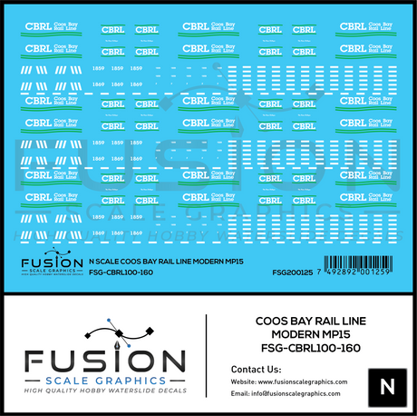 N Scale Coos Bay Rail Line Modern MP15 Locomotive Decal Set