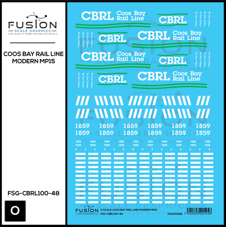 O Scale Coos Bay Rail Line Modern MP15 Locomotive Decal Set