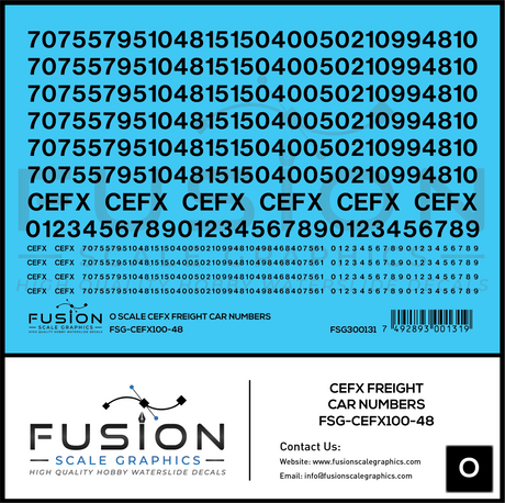 O Scale CEFX Freight Car Numbering Decal Set