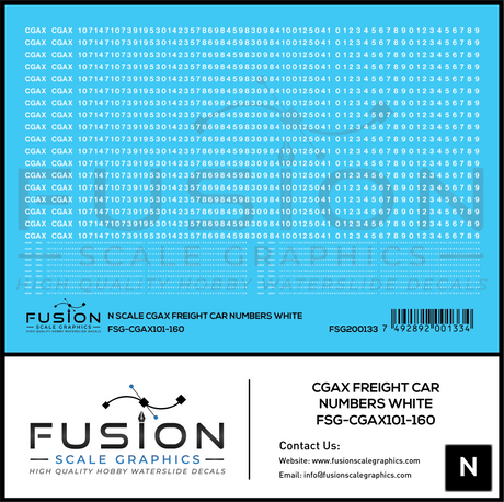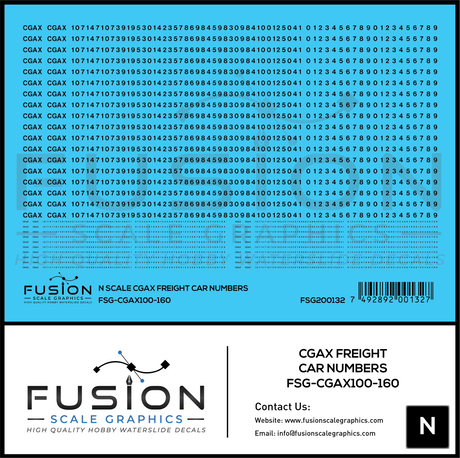 N Scale CGAX Freight Car Numbering Decal Set