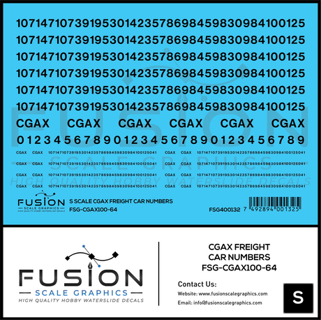 S Scale CGAX Freight Car Numbering Decal Set