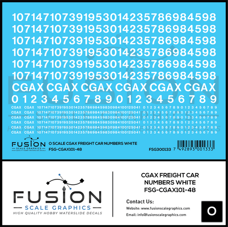 O Scale CGAX Freight Car Numbering Decal Set