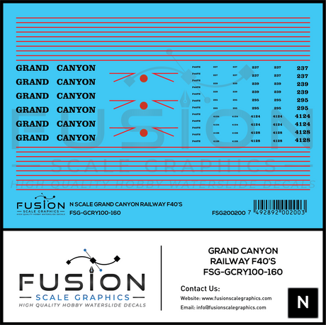 N Scale Grand Canyon Railway EMD F40PH Locomotives Decal Set