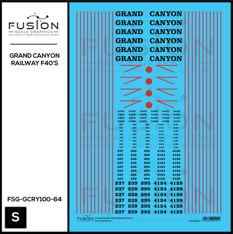 S Scale Grand Canyon Railway EMD F40PH Locomotives Decal Set