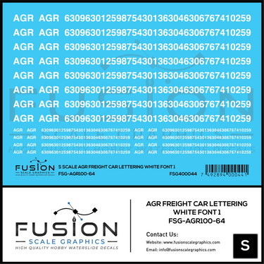 S Scale AGR Freight Car Lettering White Font 1 Decal Set