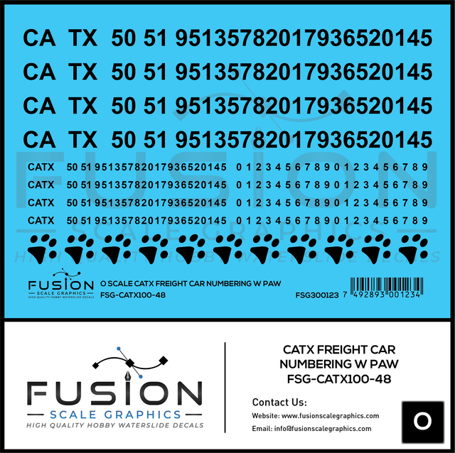 O Scale CATX Freight Car Numbering Decal Set with Paw Print may be made to order and will ship within our normal processing time if its not in stock.