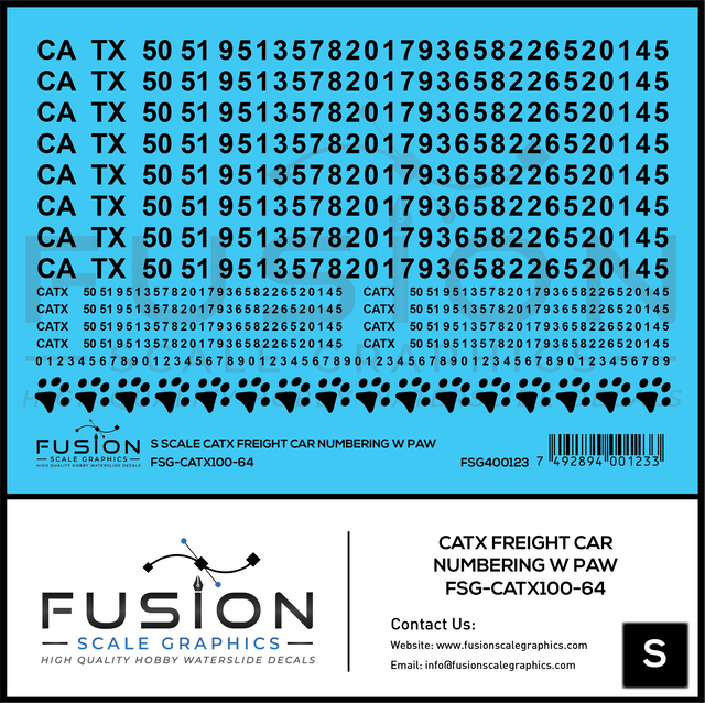 S Scale CATX Freight Car Numbering Decal Set with Paw Print