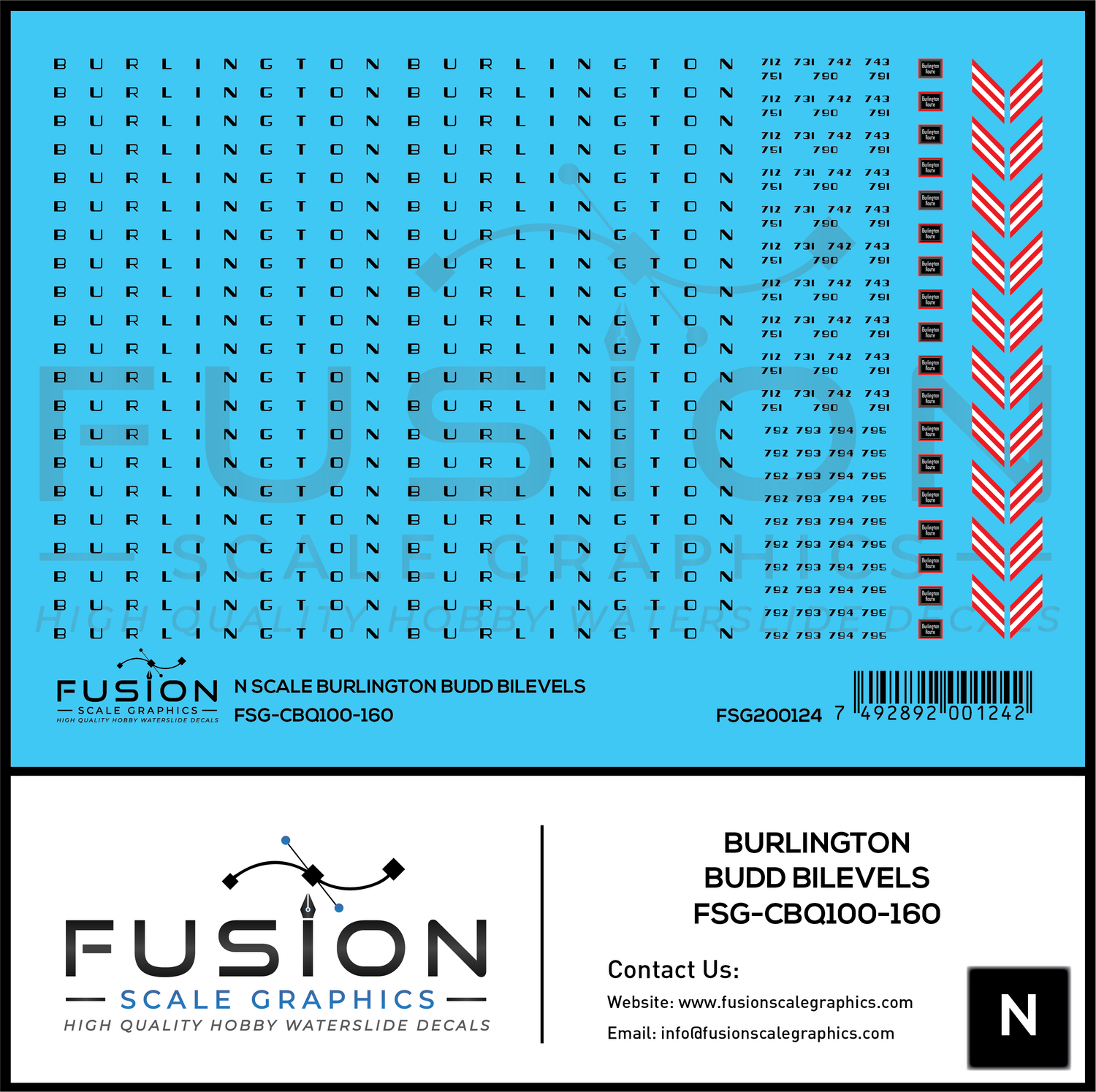 N Scale CBQ Burlington Budd BiLevels Decal Set may be made to order and will ship within our normal processing time if its not in stock.