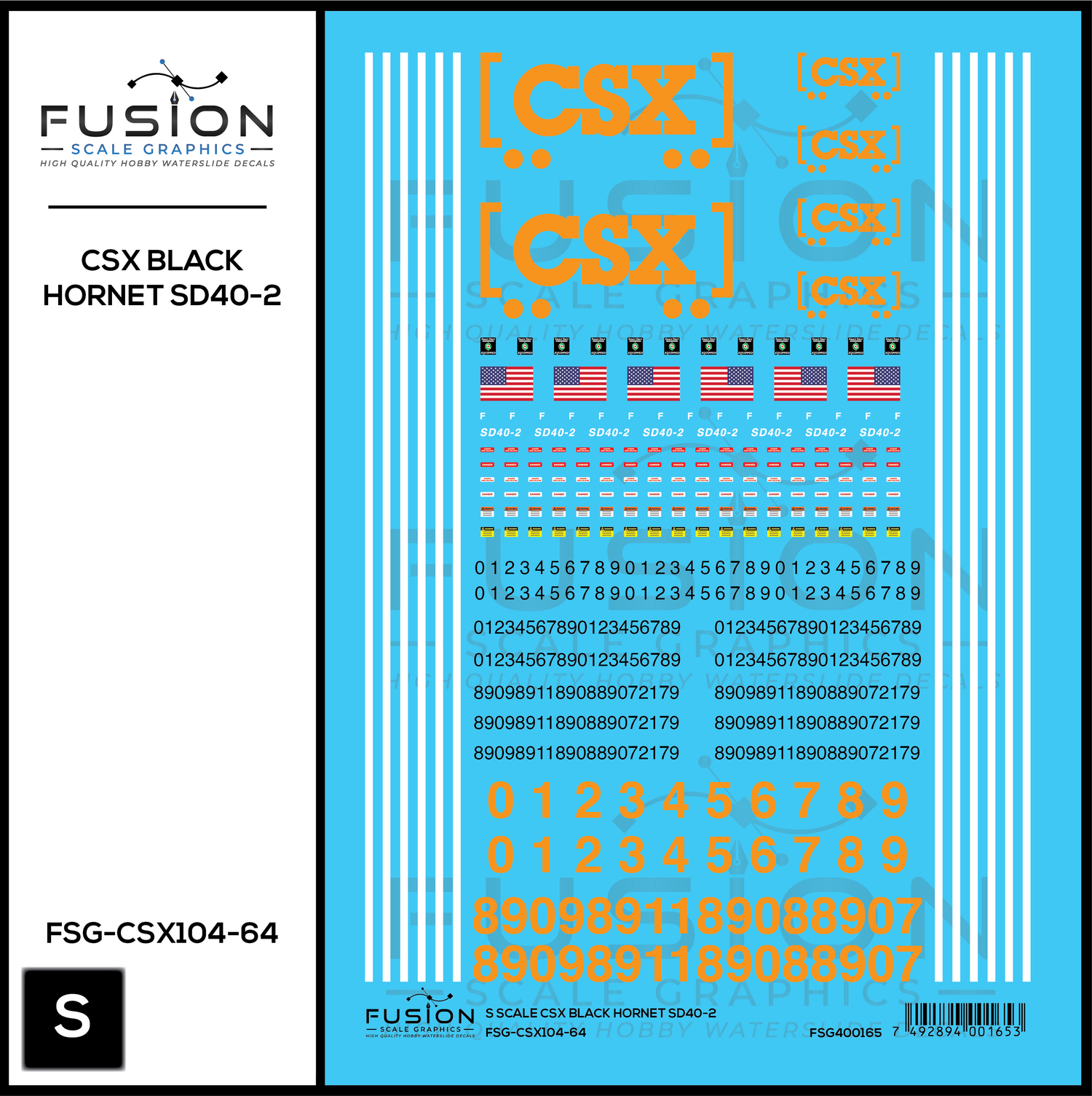 S Scale CSX Black Hornet EMD SD40-2 Locomotive Decal Set may be made to order and will ship within our normal processing time if its not in stock.