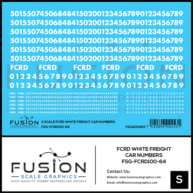 S Scale First Coast FCRD White Freight Car Numbers Decal Set