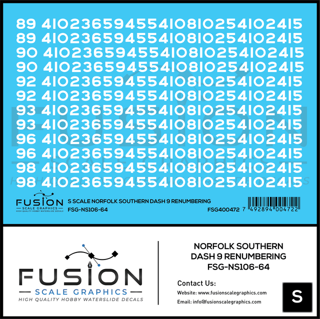 S Scale Norfolk Southern GE Dash 9 Locomotive Renumbering Decal Set
