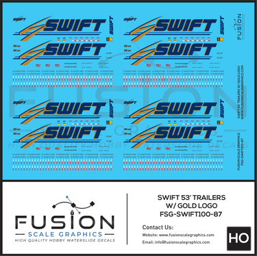 HO Scale Swift 53' Truck Trailers W/ Gold Logo Decal Set