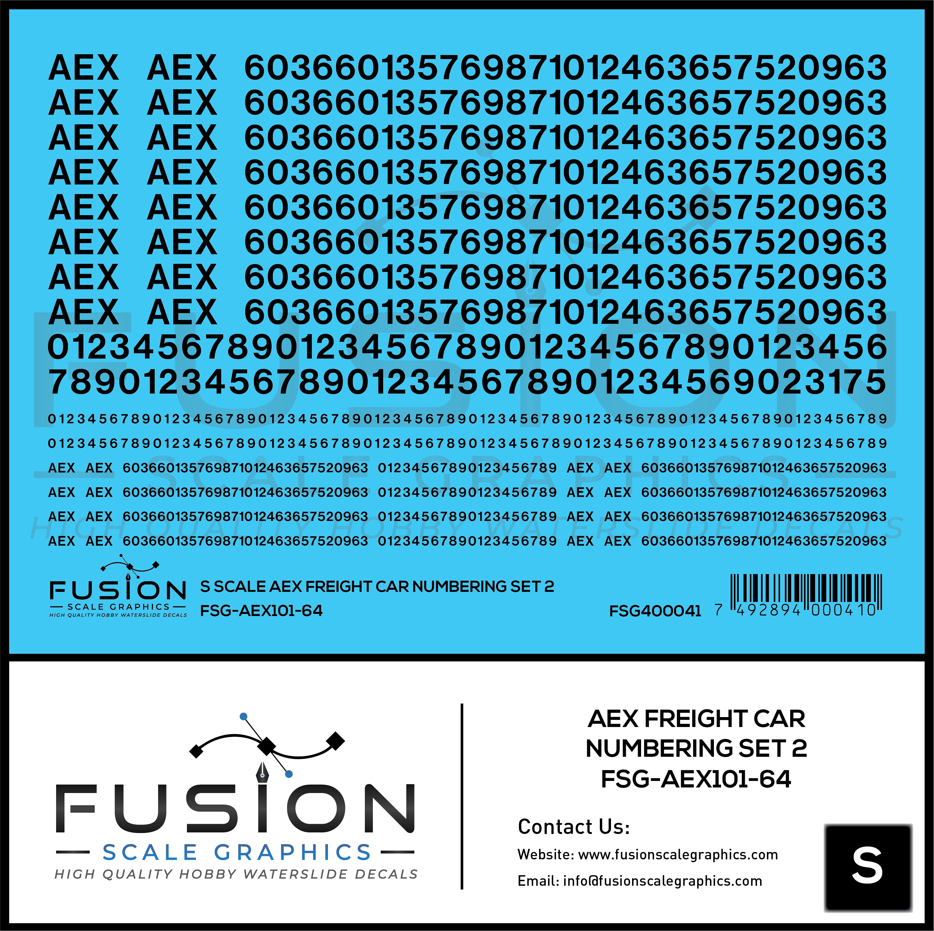 S Scale AEX Freight Car Numbering Set 2 Decal Set