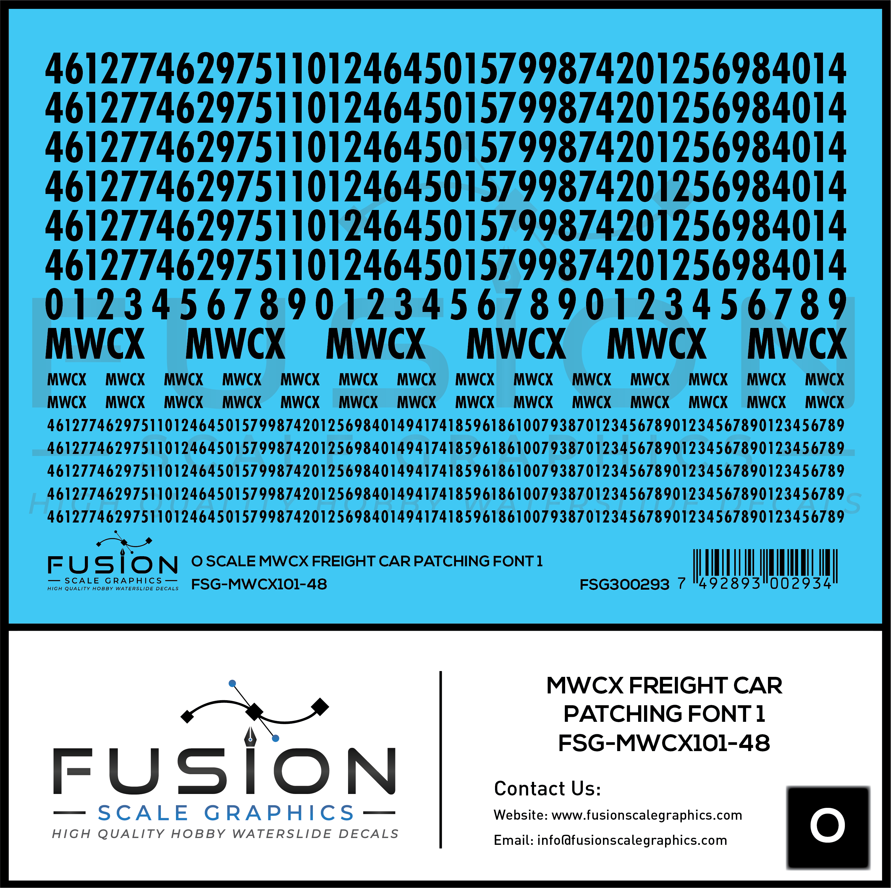 O Scale MWCX Freight Car Patching Font 1 Decal Set