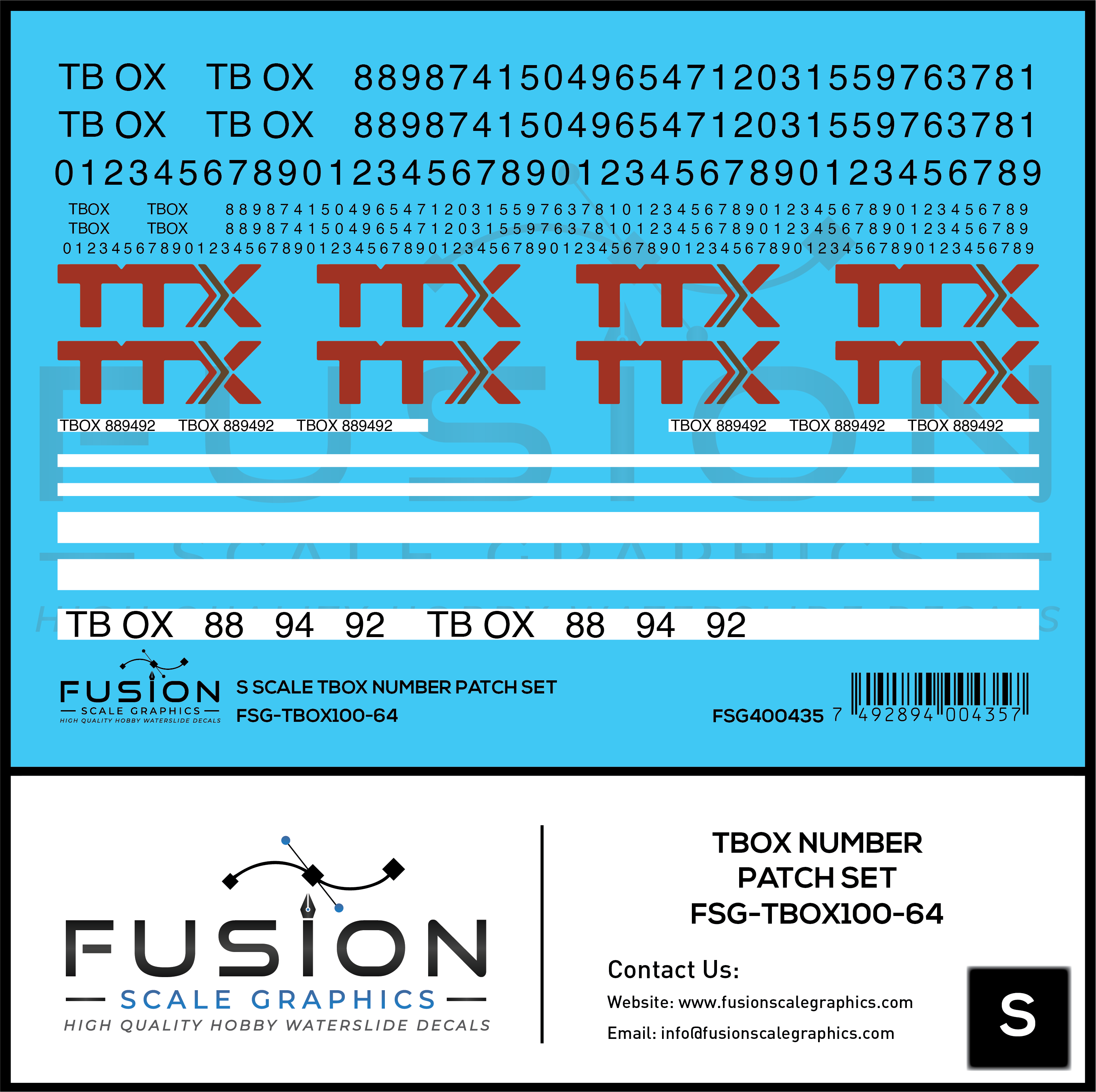 S Scale TBOX Car Number Patching Decal Set