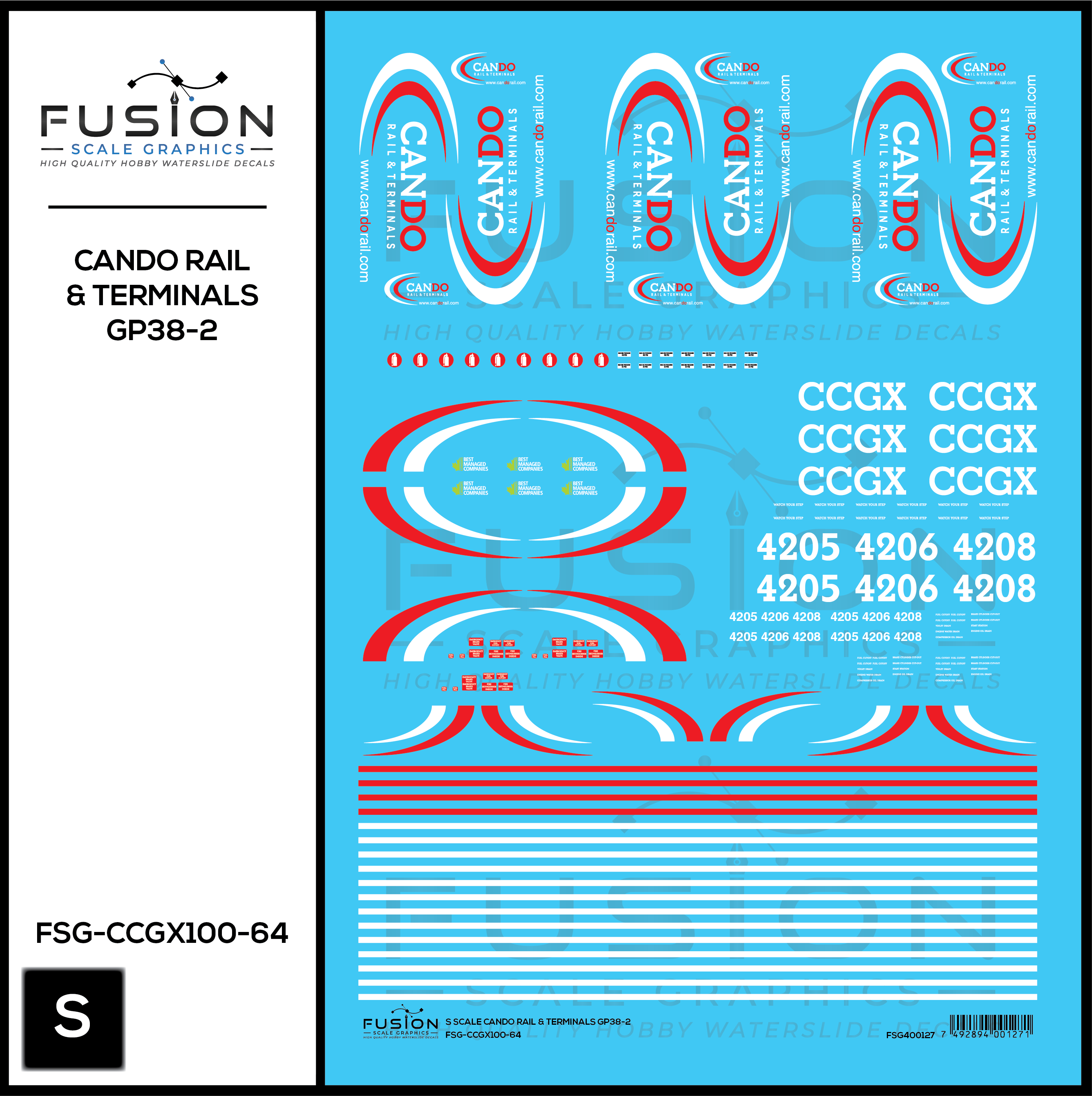 S Scale Cando Rail and Terminals EMD GP38-2 Locomotives Decal Set