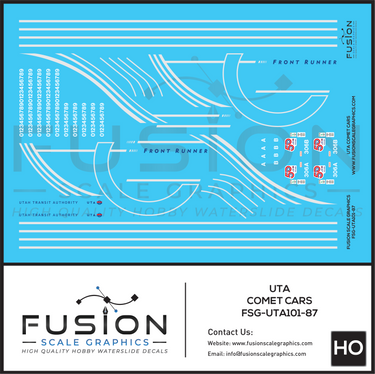 HO Scale Utah Transit Authority Comet Car Decal Set