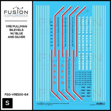S Scale VRE Virginia Railway Express Blue Top Pullman BiLevel Decal Set