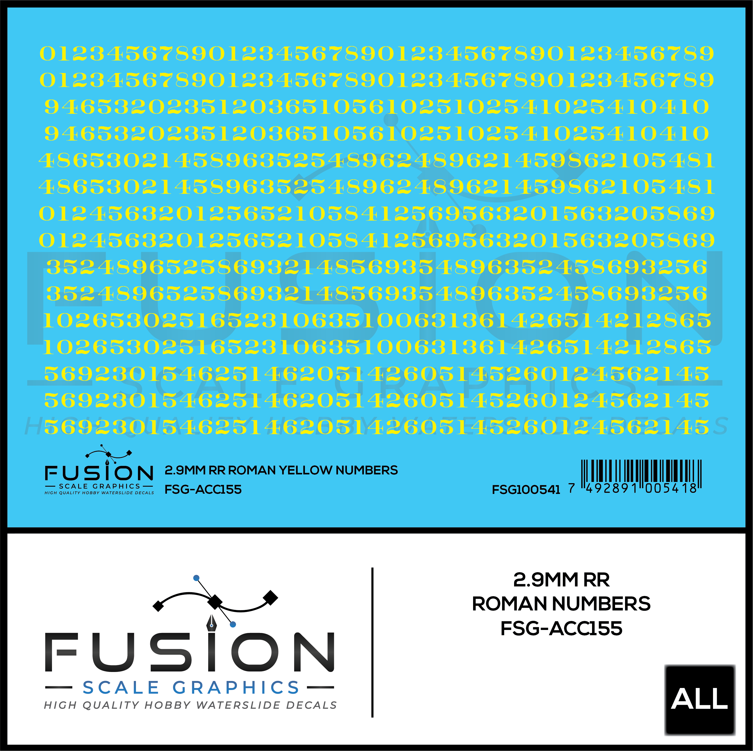 2.9mm Railroad Roman Yellow Numbers Decal Set