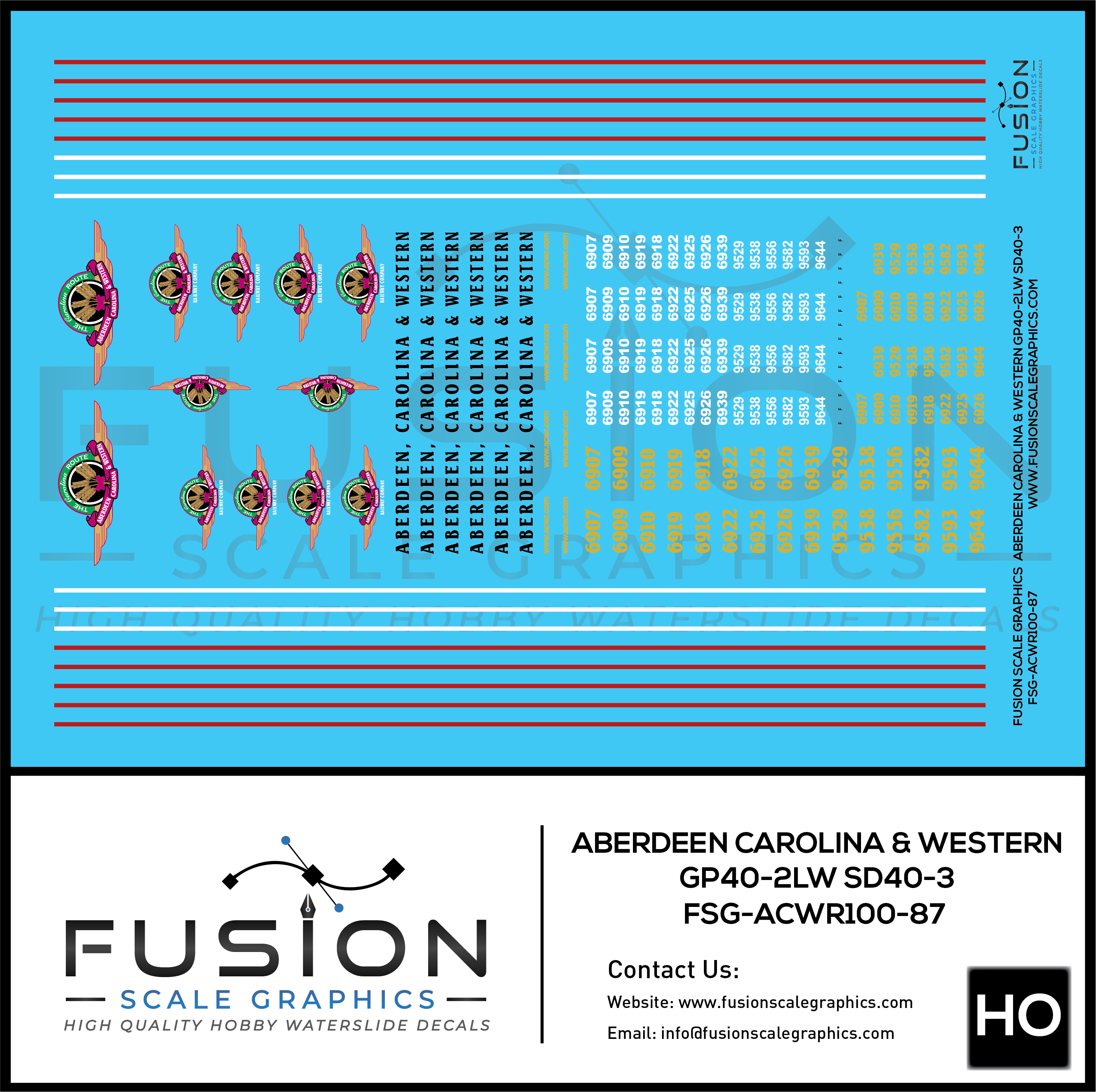 HO Scale Aberdeen Carolina and Western EMD GP40-2WL SD40-3 Locomotives Decal Set
