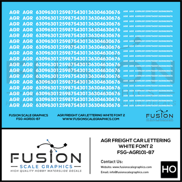 HO Scale AGR White Freight Car Lettering Decal Set Font 2