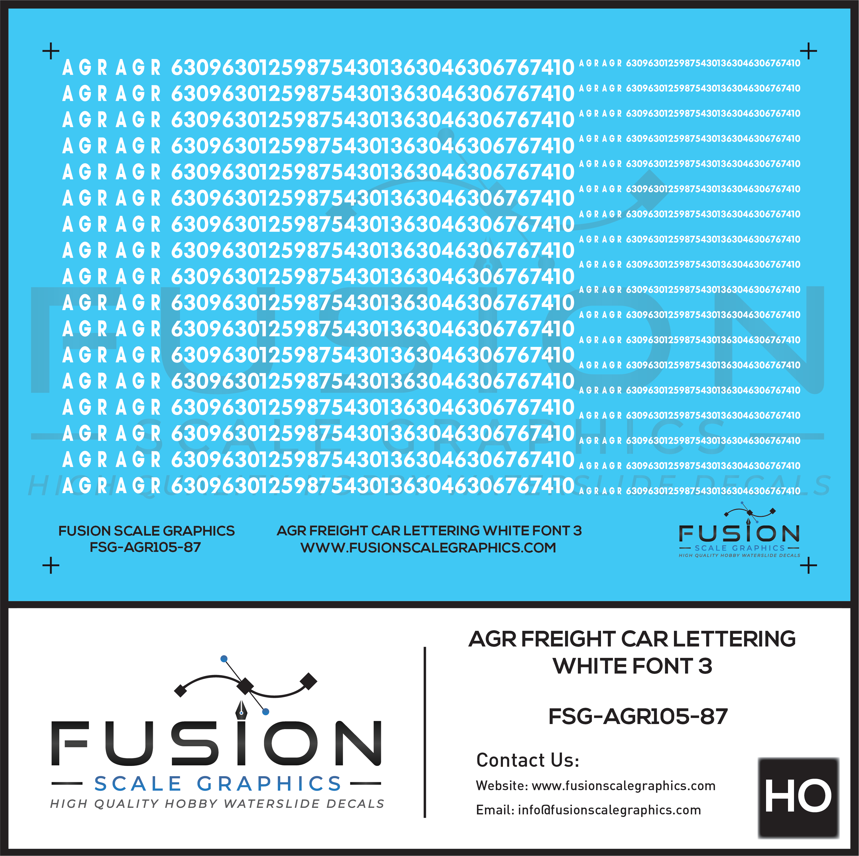 HO Scale AGR White Freight Car Lettering Decal Set Font 3