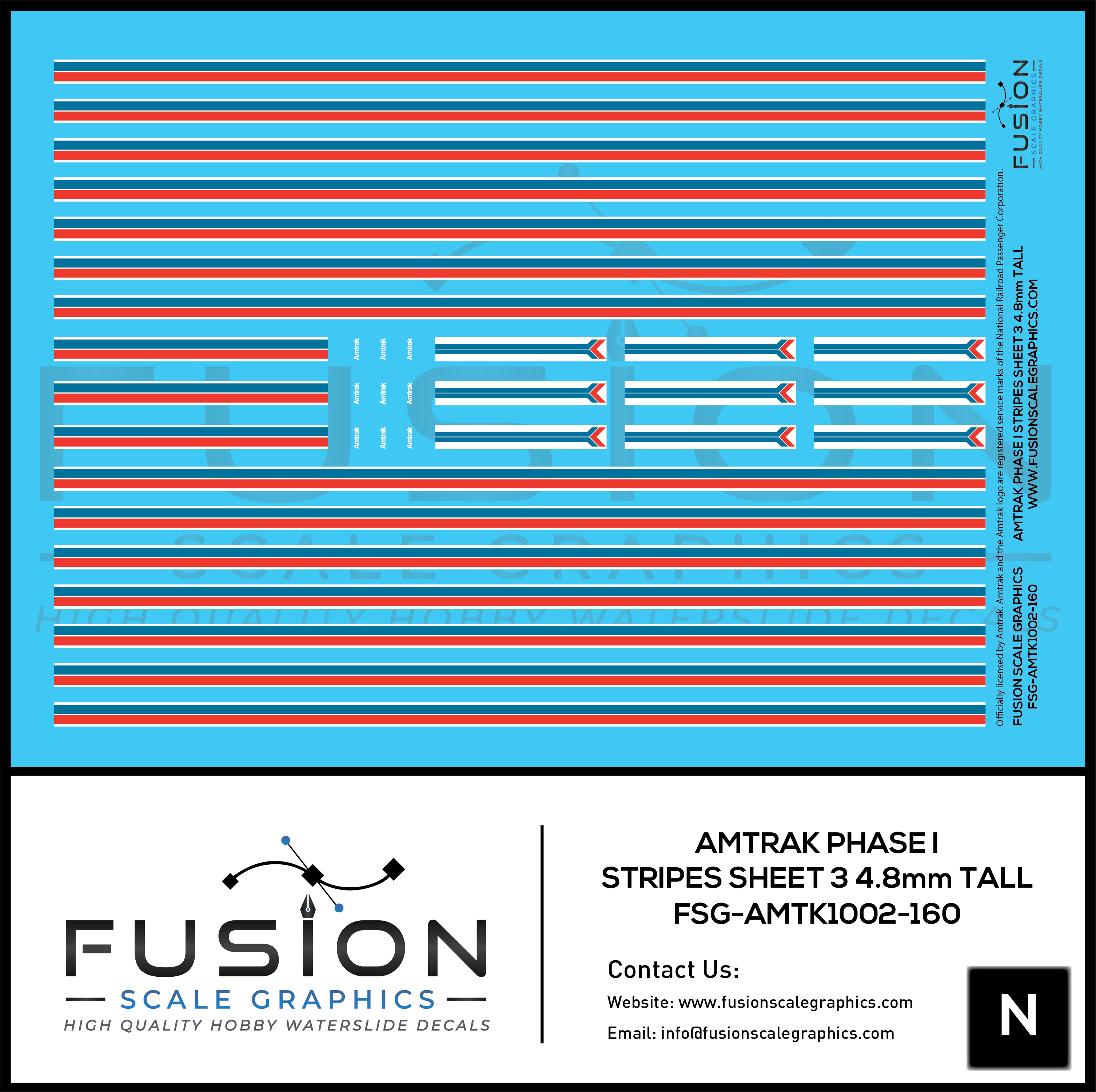 N Scale Amtrak Phase I Stripes Sheet 3 4.8 Tall Decal Set