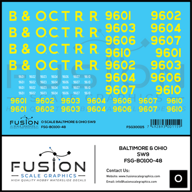 O Scale Baltimore & Ohio EMD SW9 Locomotive Decal Set