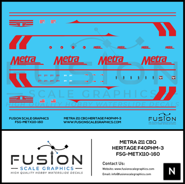 N Scale Metra EMD F40PHM-3 211 CB&Q Heritage Locomotive Decal Set