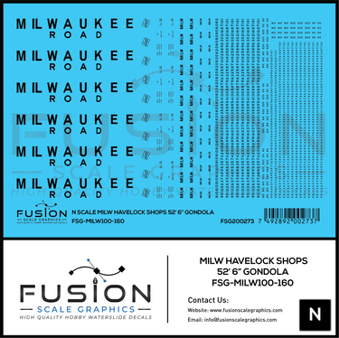 N Scale Milwaukee Road Havelock Shops 52' 6" Gondola Decal Set