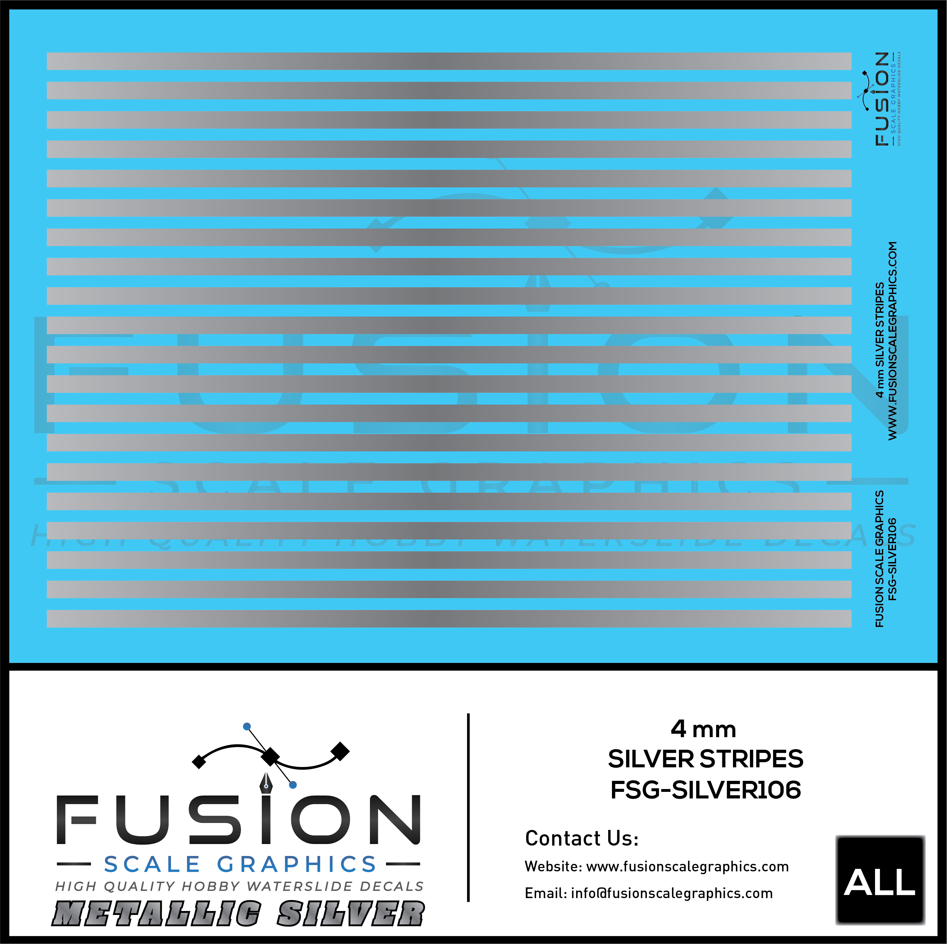 Metallic Silver 4mm Wide Stripe Decal Set