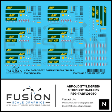 N Scale ABF Freight Old Style Green Stripe 28' Truck Trailers Decal Set